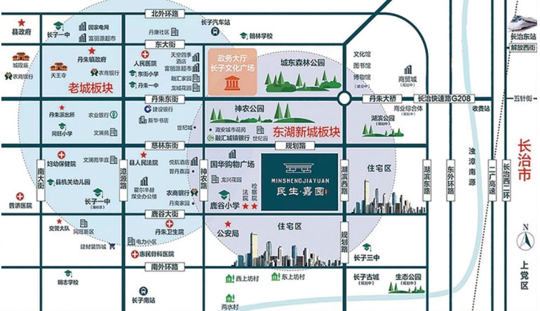 民生·嘉园一期小区由山西民生房地产开发有限公司开发;项目位置位于长子县鹿谷大街与湖滨西路十字西北角;房屋性质为70年大产权住宅用地,总占地约49479平方、地上总建面积约121449平方米(地上计容面积)、容积率2.7,绿化率37%,建筑风格为新中式园林的建筑风格,由8栋住宅组成,是真正的低密度、高品质改善型住宅,楼栋行列式排布,保障了良好采光和通风,又拥有的视野景观;小区总户数1026套,配有1070个车位,未来至少可容纳3500人居住。